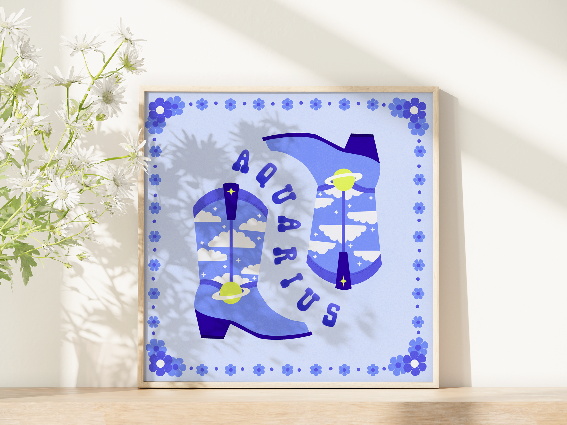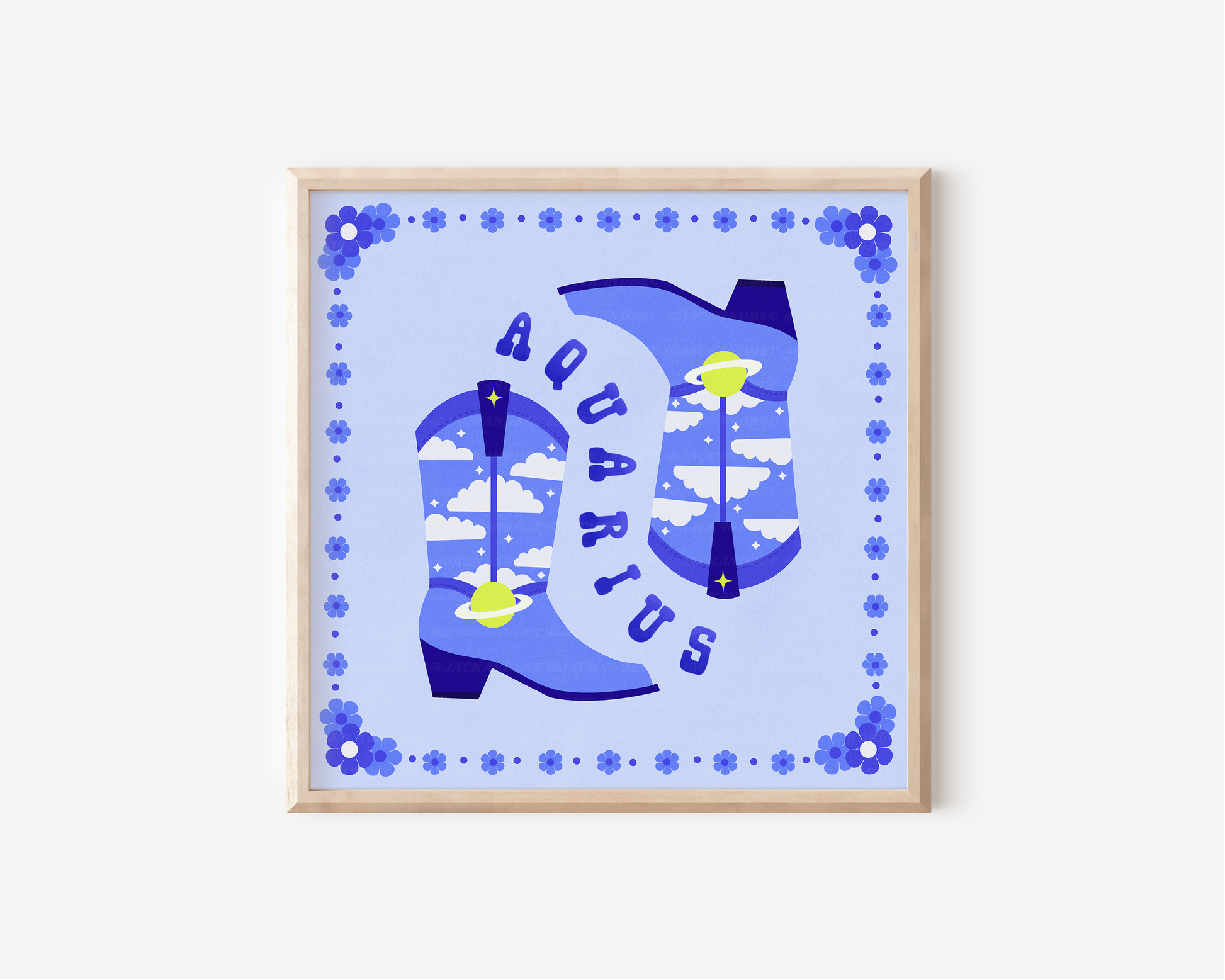 "Aquarius Boots” is printed on 8”x8” or 11”x11” Smooth Fine Art Archive paper.
