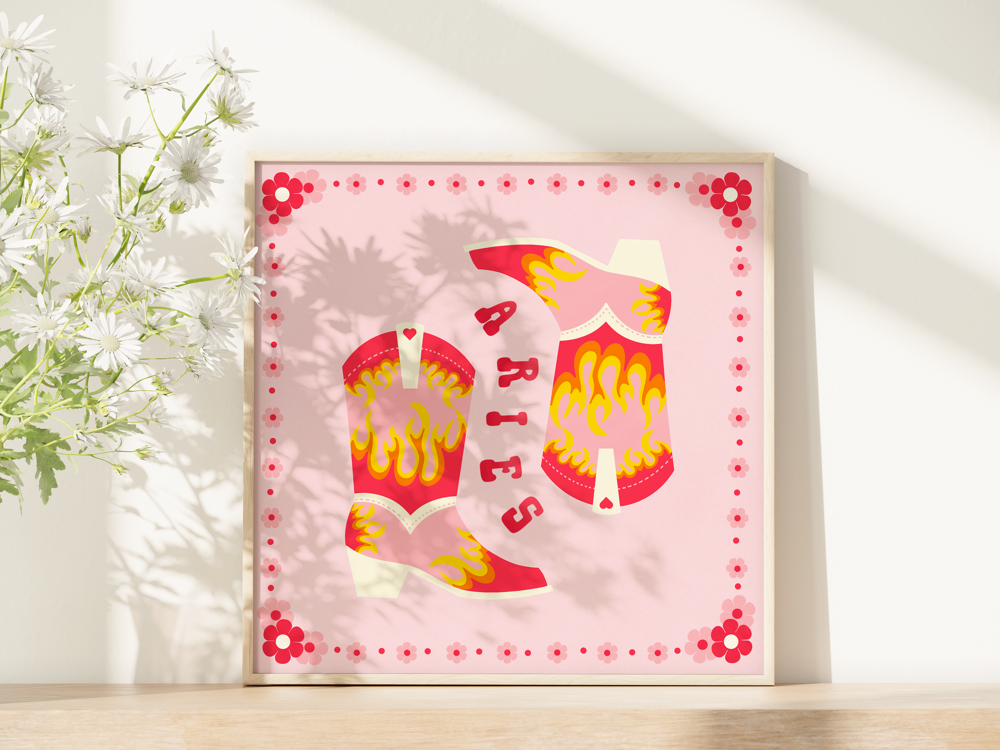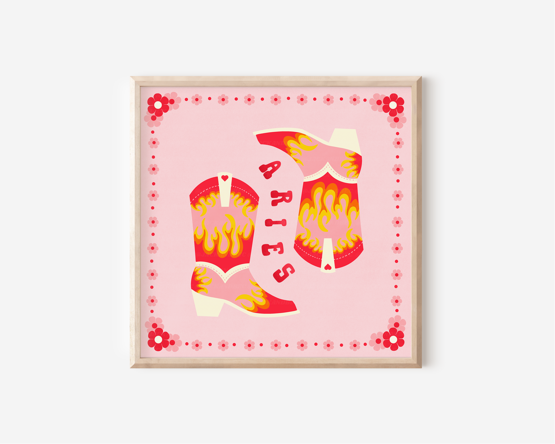 "Aries Boots” is printed on 8”x8” or 11”x11” Smooth Fine Art Archive paper.