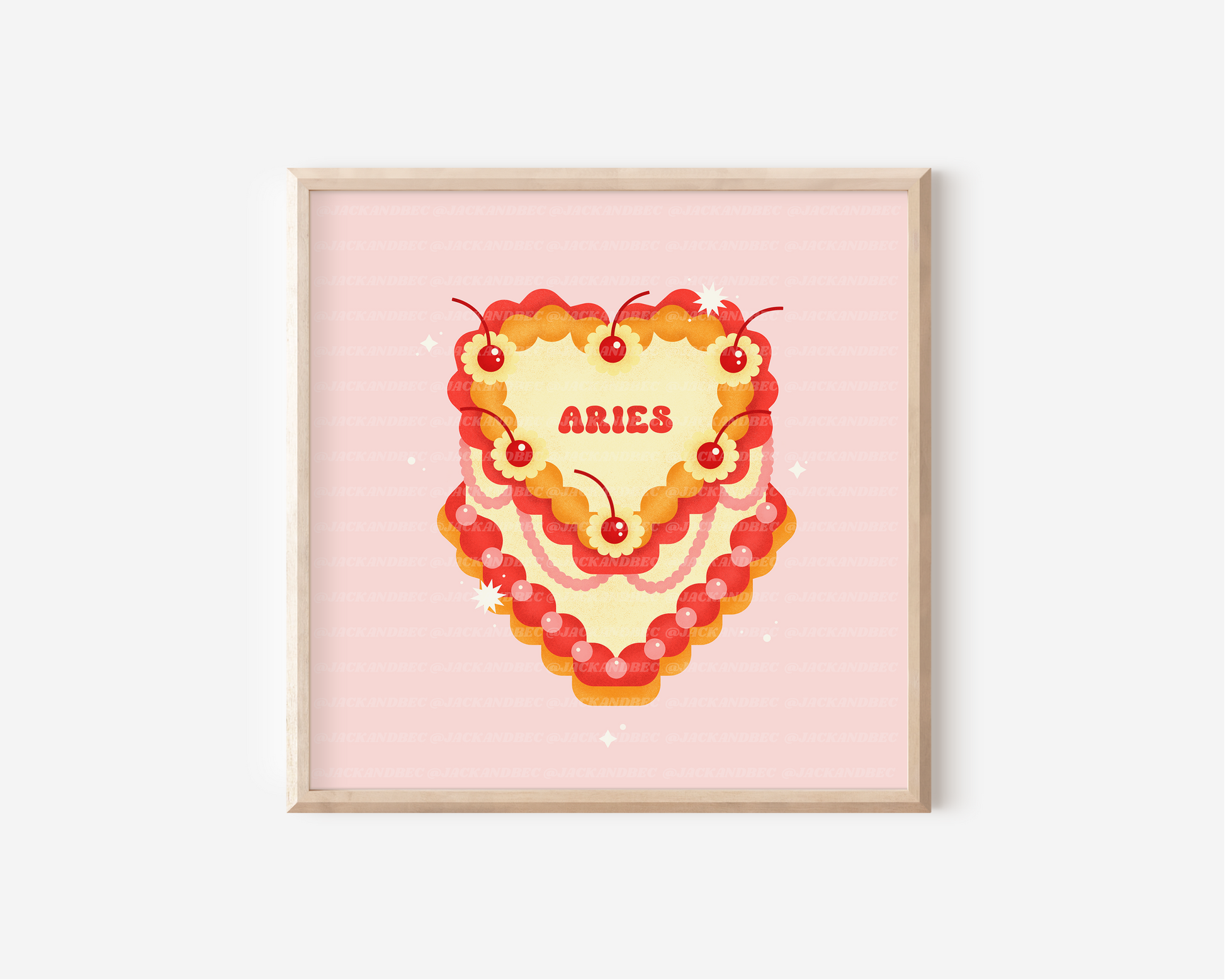 “Aries Cake” is printed on 8”x8” or 11”x11” Smooth Fine Art Archive paper.