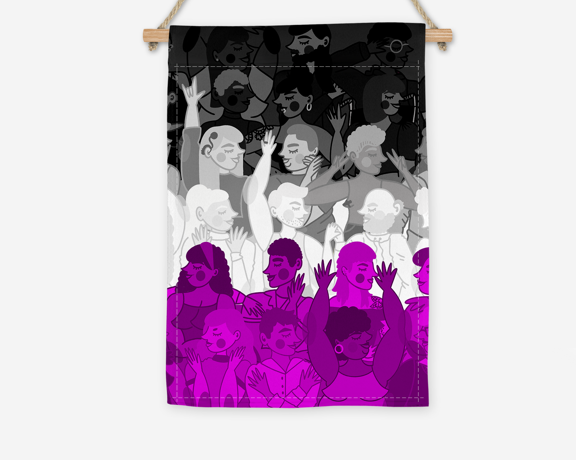 The ace pride flag is approximately 18 in. tall by 13 in. wide. All flags are printed with original artwork by Jack and Bec and are hand-sewn in our home studio in Texas.