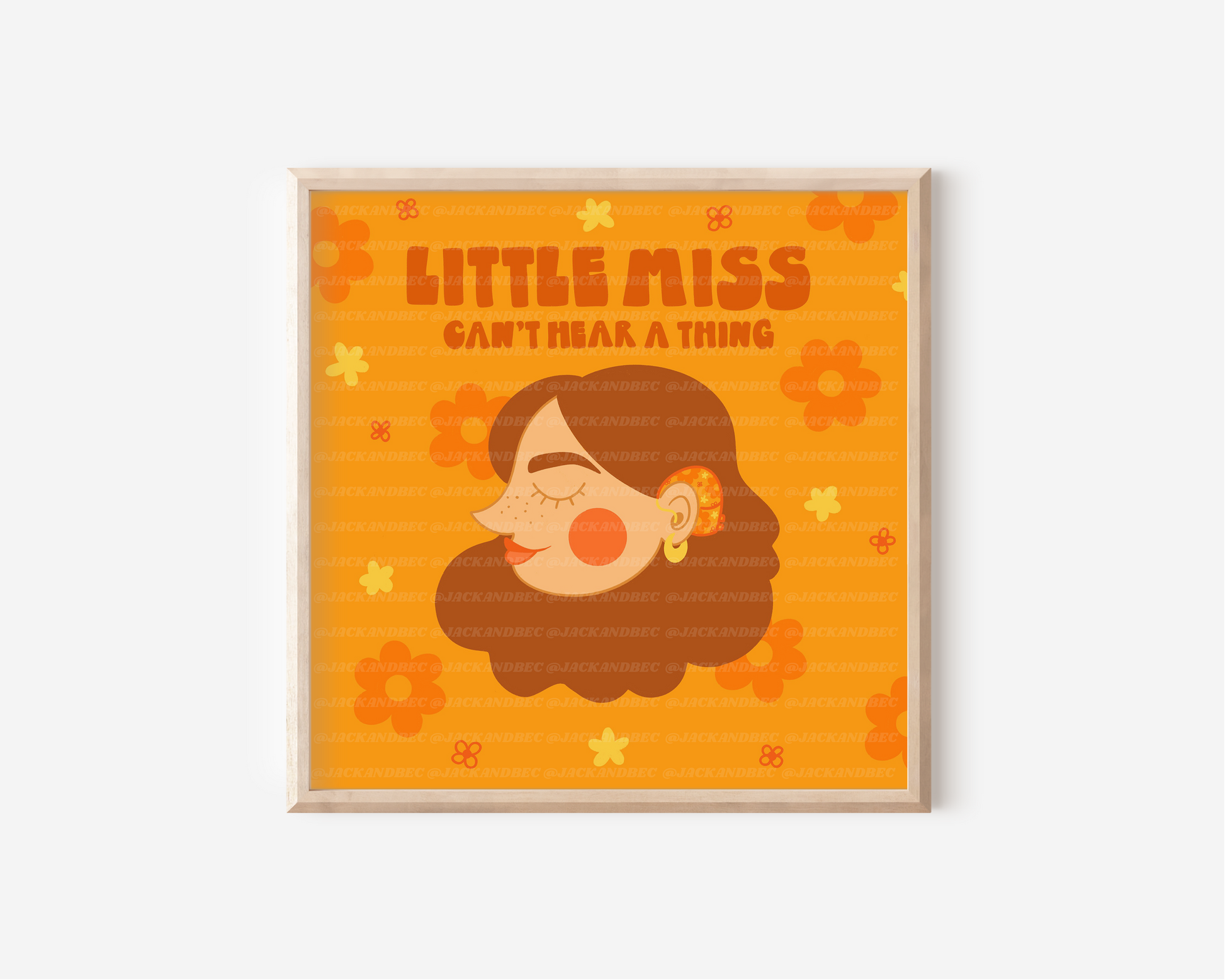 “Little Miss Can't Hear” is printed on 8”x8” or 11”x11” Smooth Fine Art Archive paper.