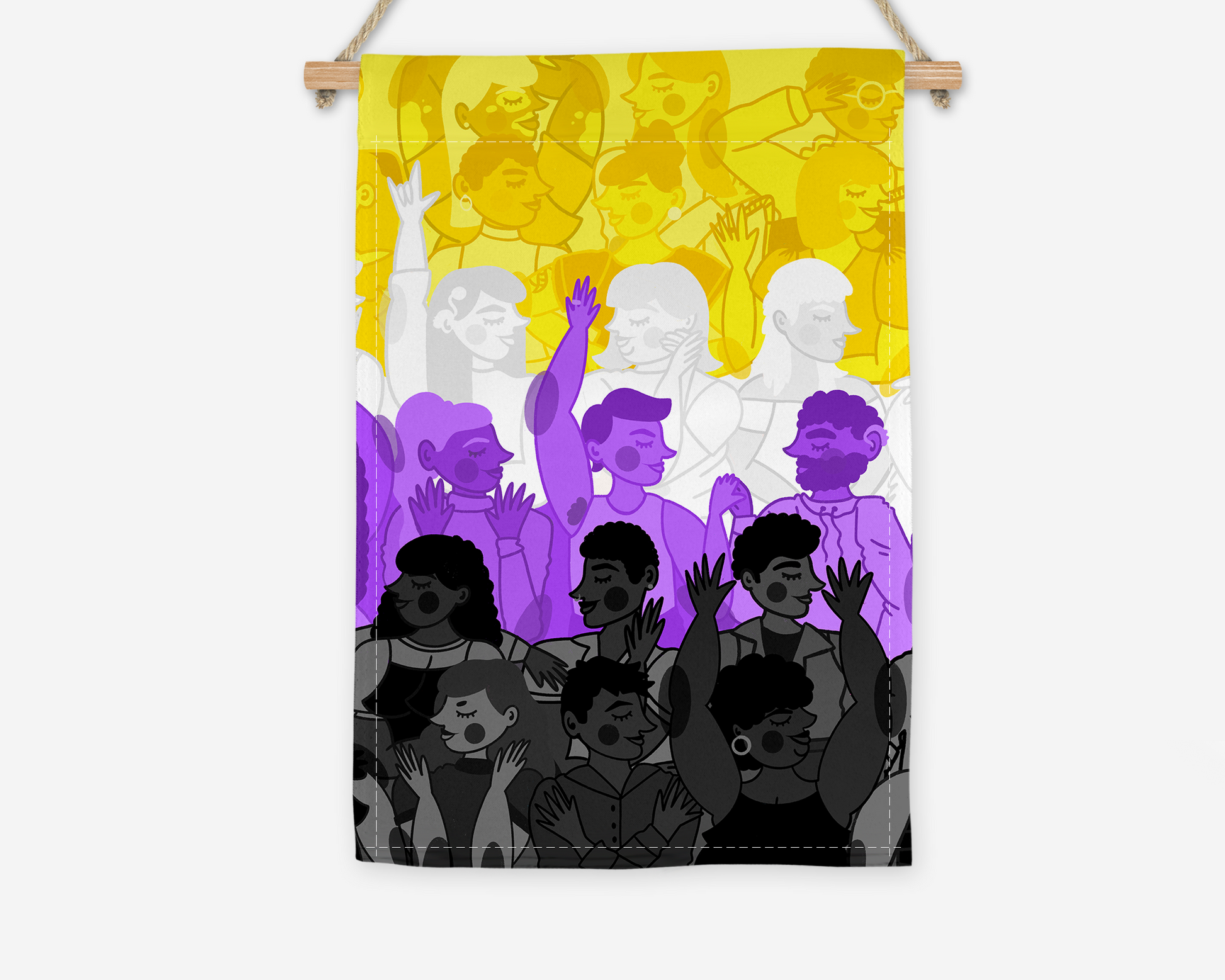 The enby pride flag is approximately 18 in. tall by 13 in. wide. All flags are printed with original artwork by Jack and Bec and are hand-sewn in our home studio in Texas.