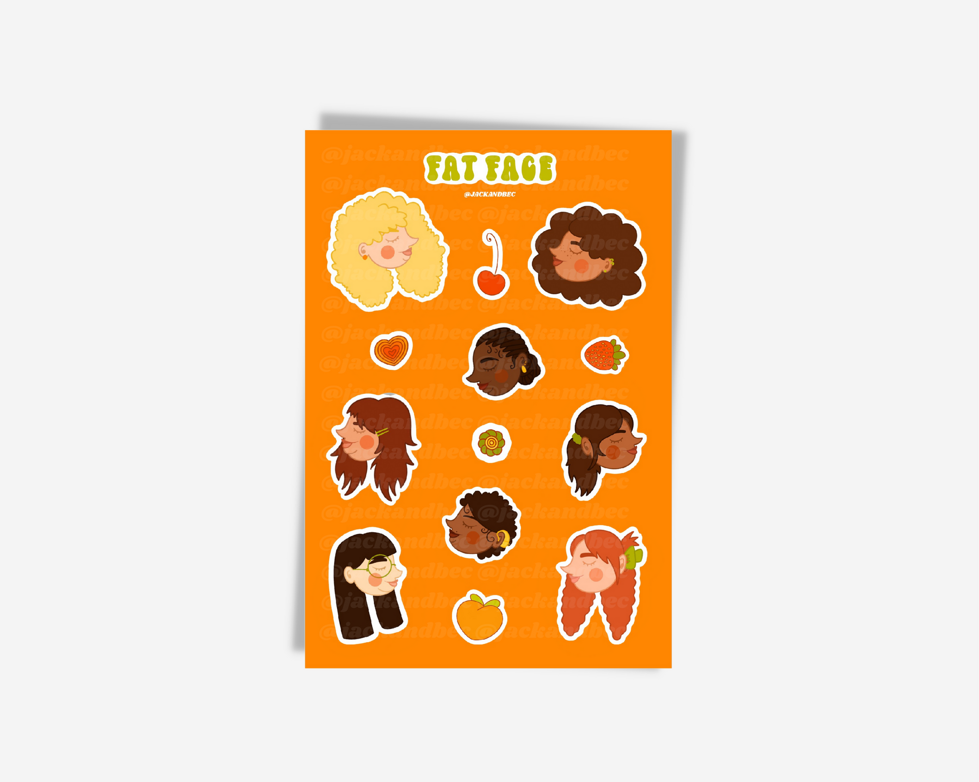 “Fat Face” Sticker Sheet is 4” x 6”, contains 13 stickers, and is