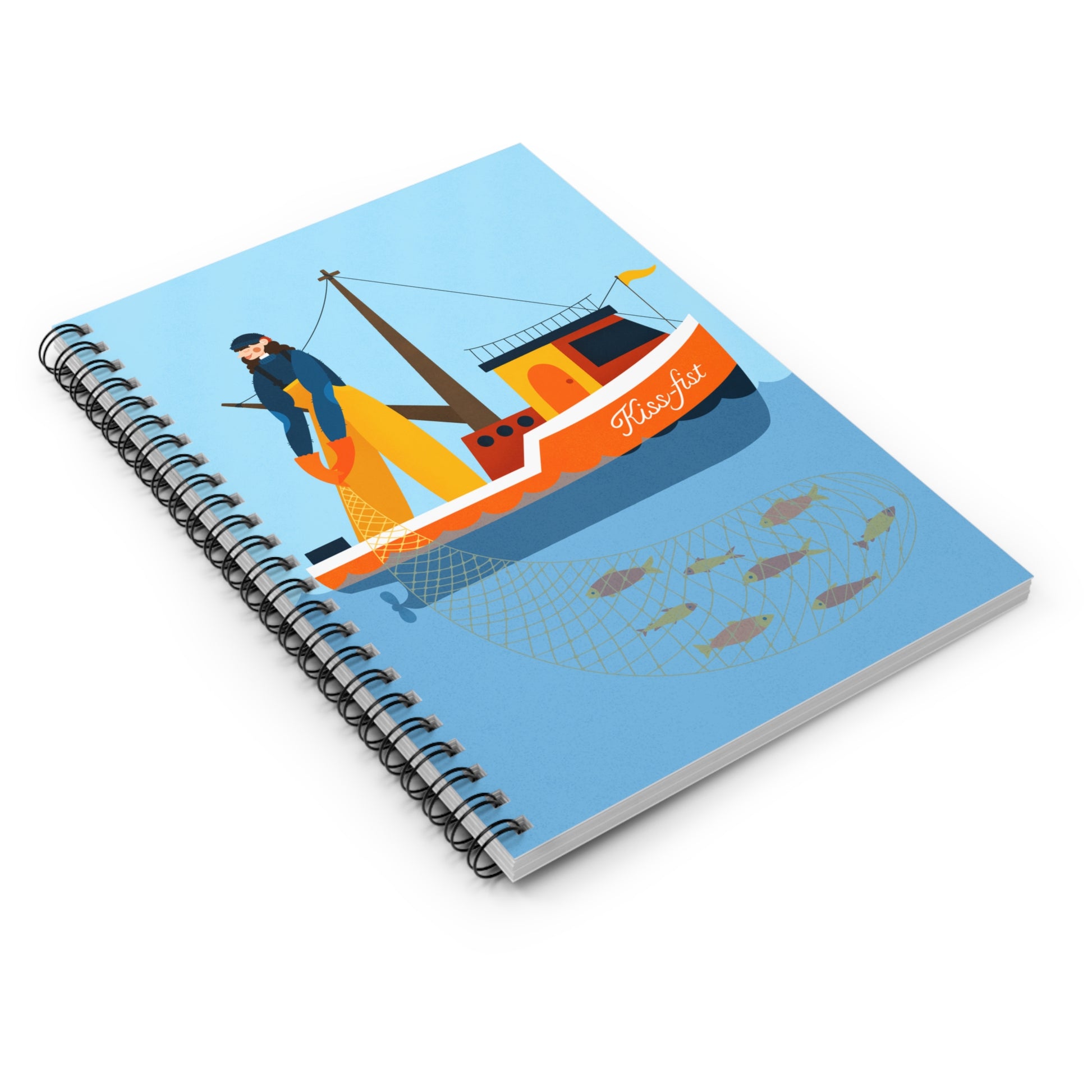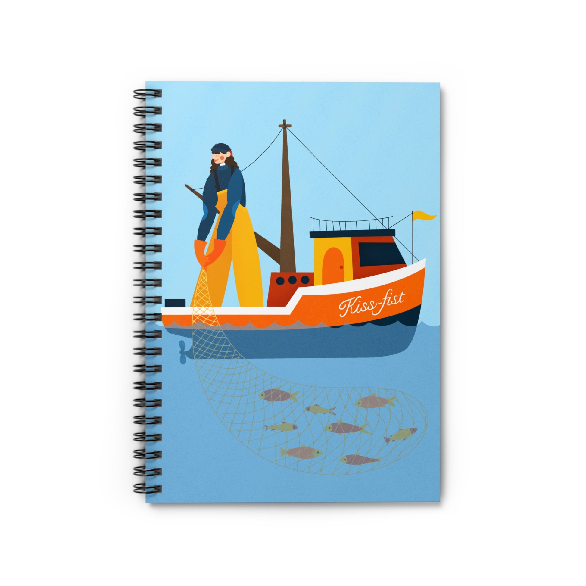 The kiss-fist notebook features a full color drawing of a deaf fisherwoman with hearing aids on her boat named the kiss-fist. This notebook is part of our Martha’s Vineyard sign language collection for deaf awareness month, paying tribute to the historical significance of the island.