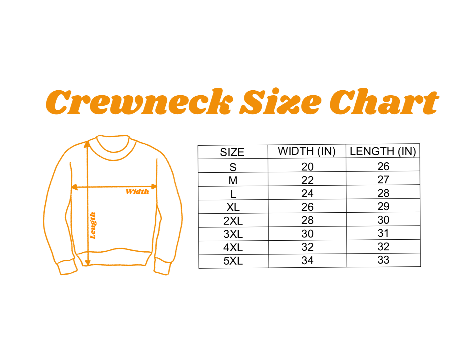 ***Please note actual colors may vary due to differences in computer monitors and browsers. Crewnecks are unisex sizing and may shrink depending on washing method. Because this item is made to order, this item is final sale. Please refer to the size chart to avoid purchasing the wrong size.