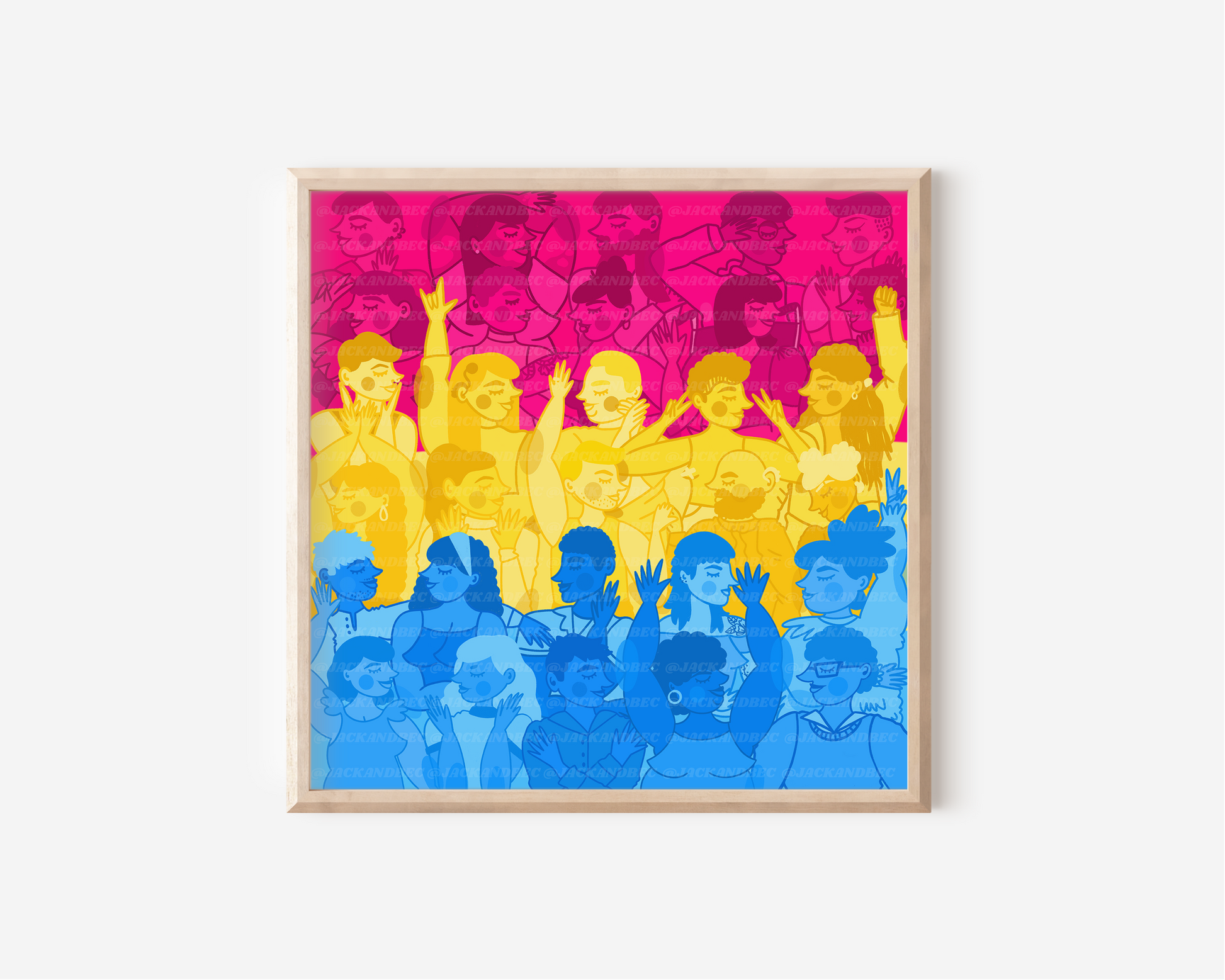 “Pansexual Pride” is printed on 11”x11” or 8"x8" Smooth Fine Art Archive paper.