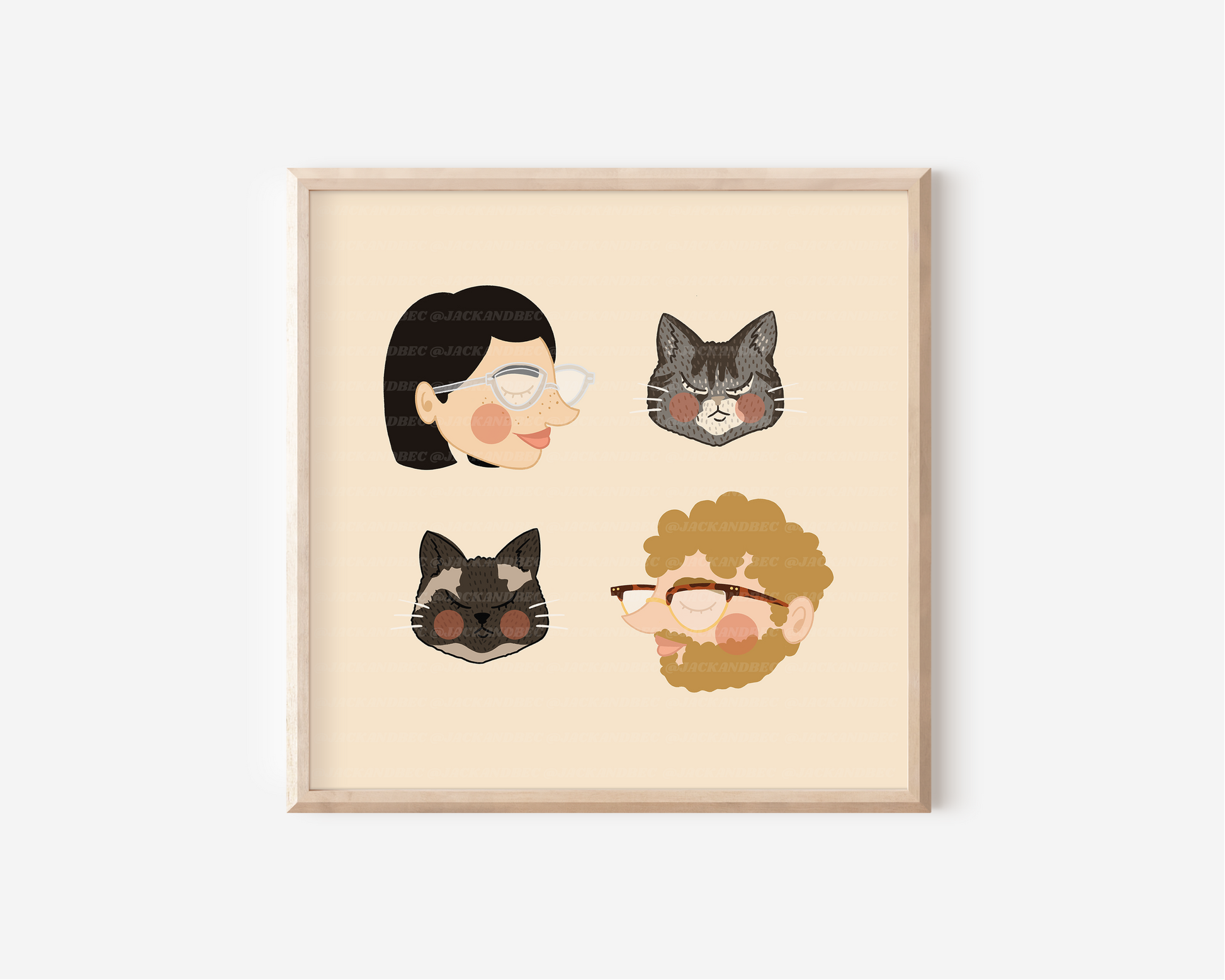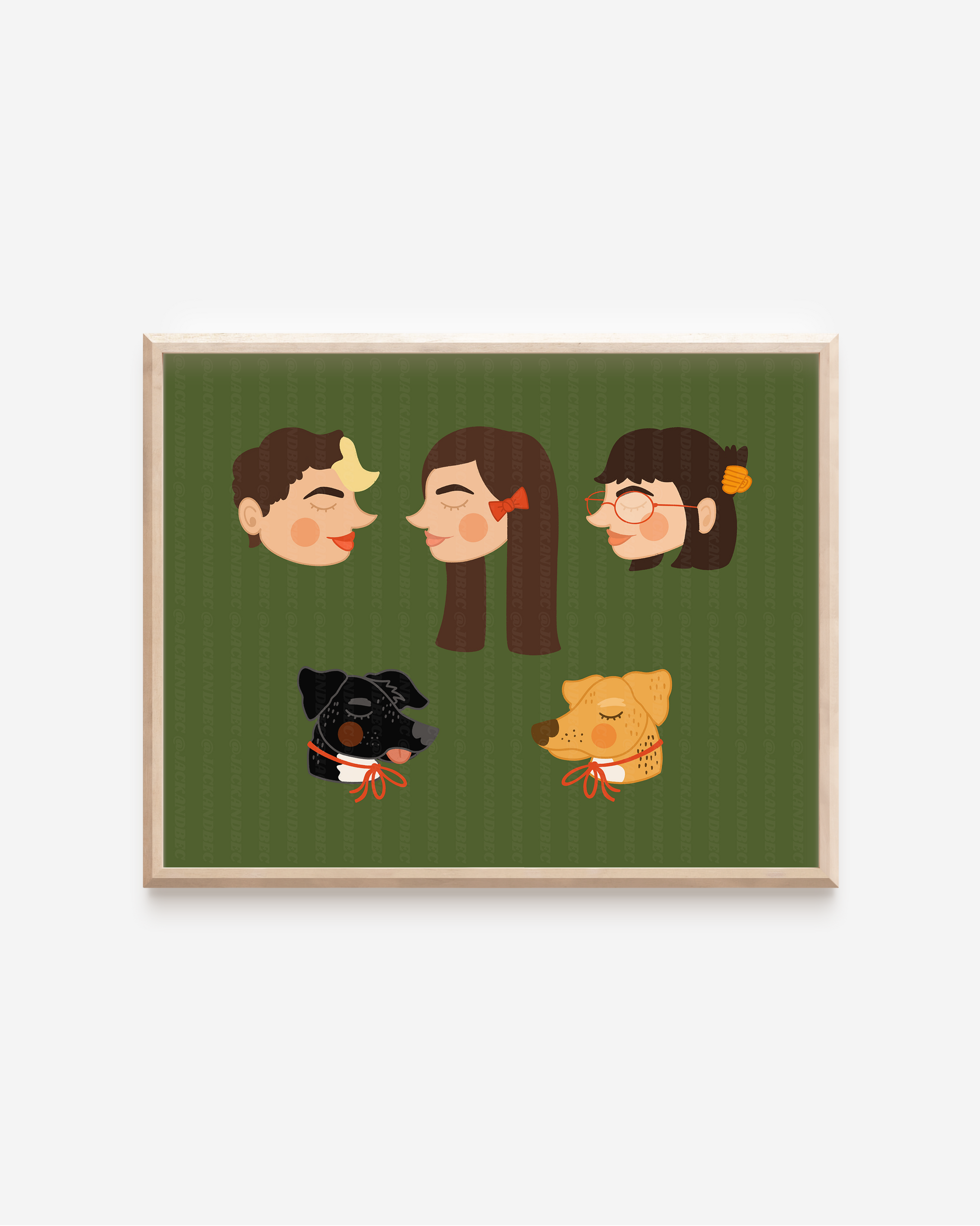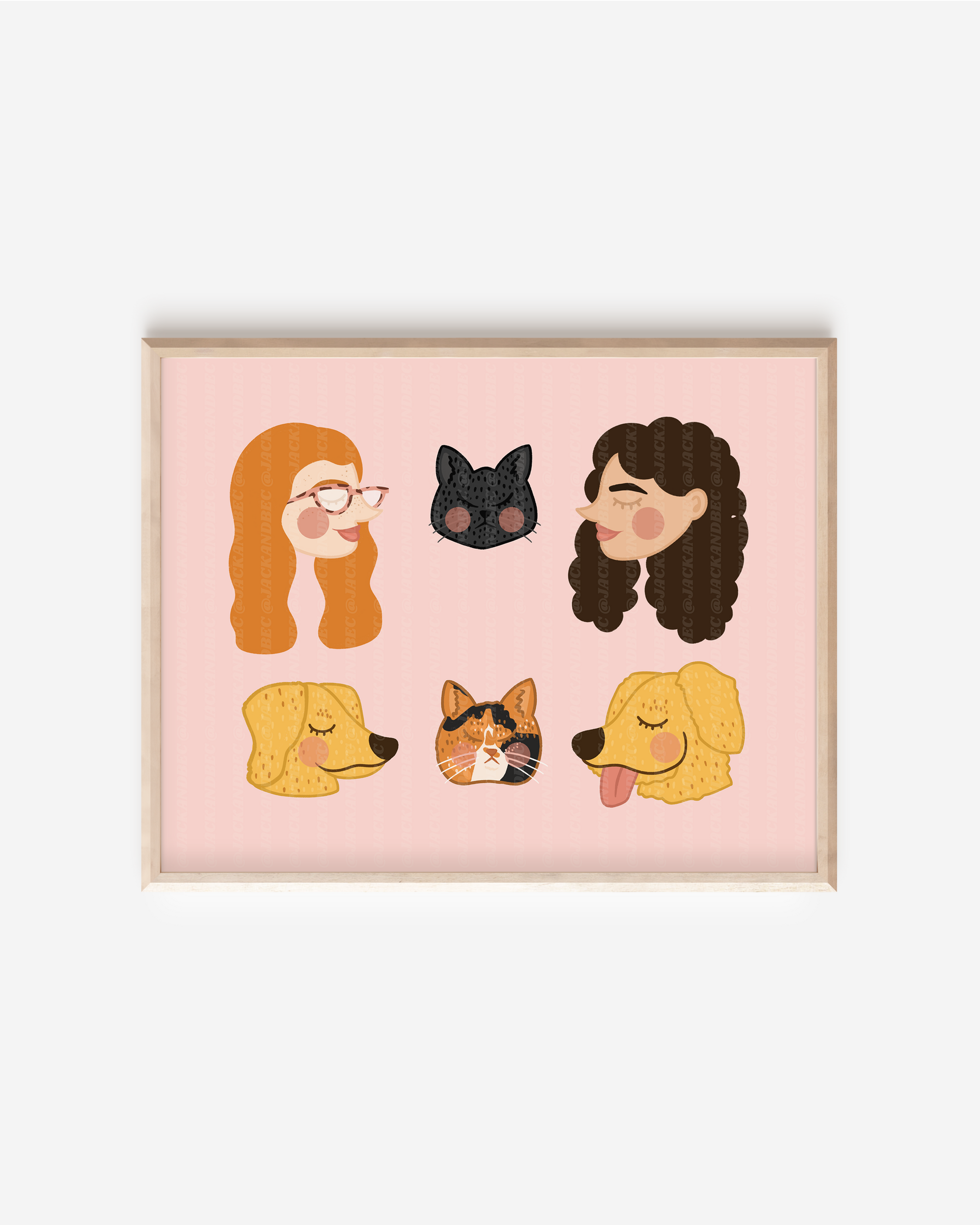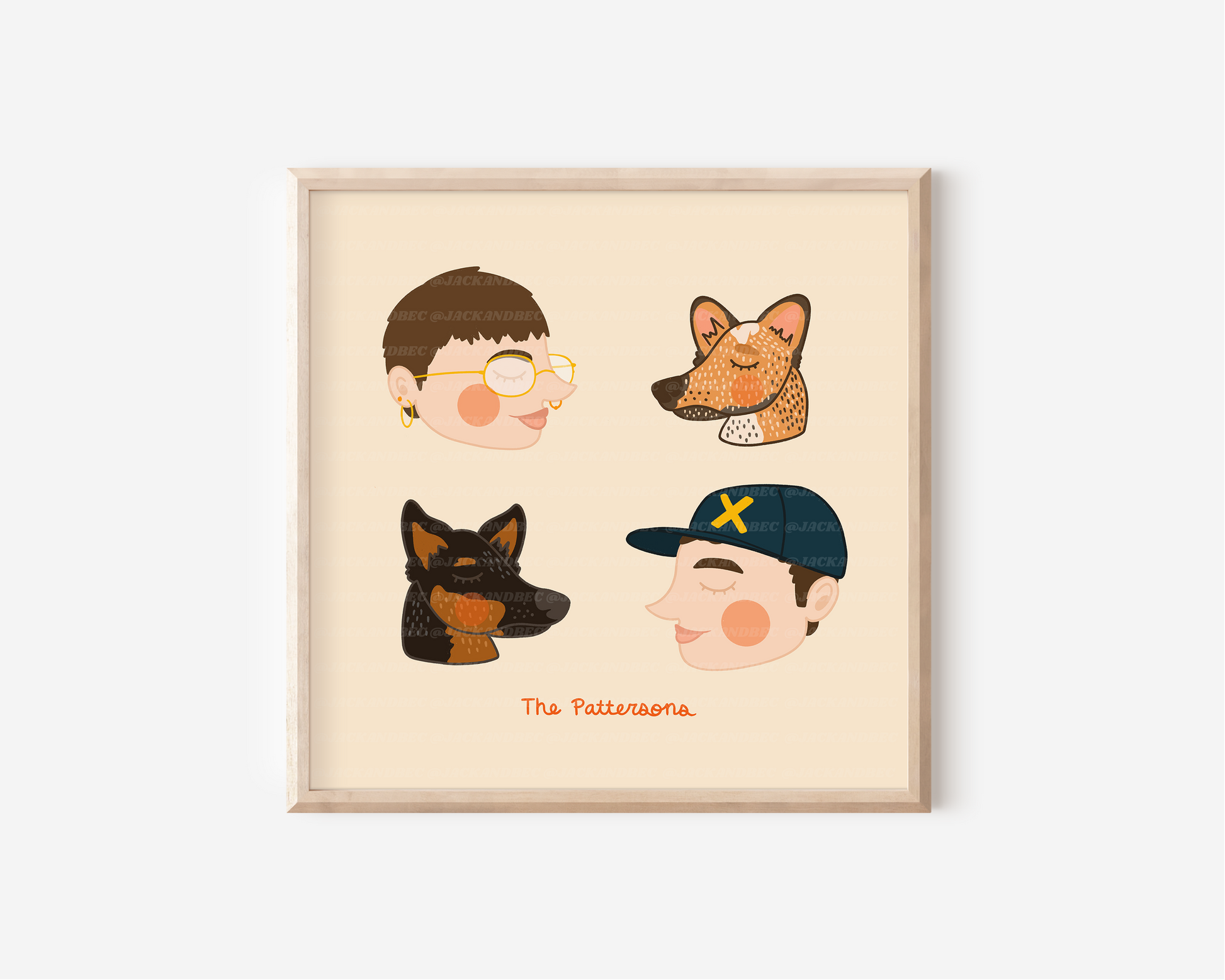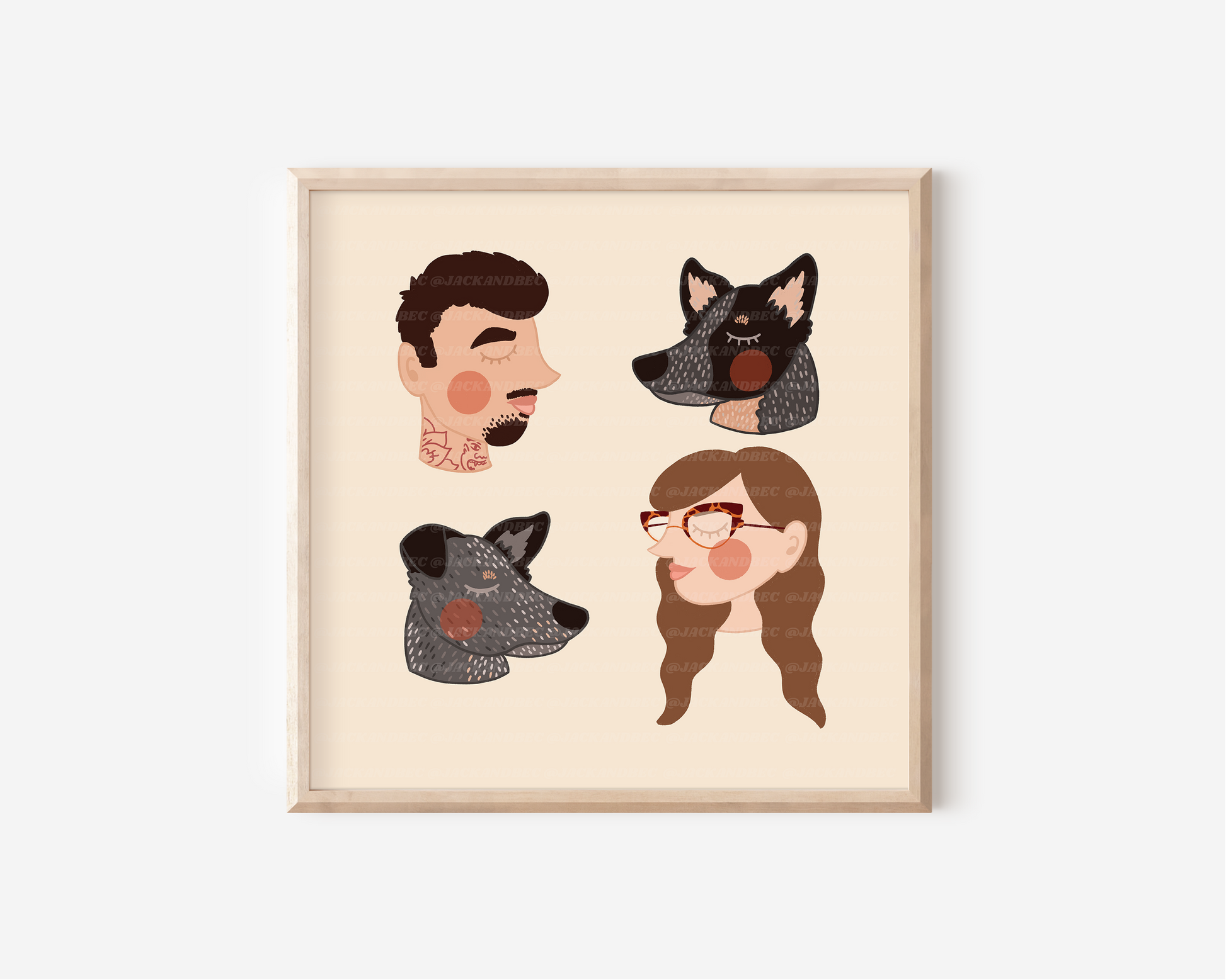 This listing is for a digital portrait printed on 11in x 11in or 11in x 14in smooth fine art archival paper. Size of paper is dependent on number of subjects. Print will be shipped in a cardboard mailer. Portraits are final sale.