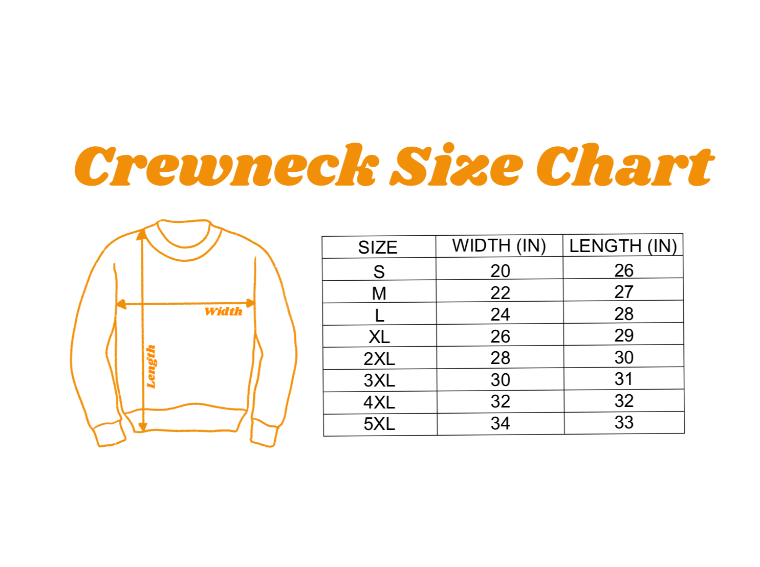 ***Please note actual colors may vary due to differences in computer monitors and browsers. Crewnecks are unisex sizing and may shrink depending on washing method. Because this item is made to order, this item is final sale. Please refer to the size chart to avoid purchasing the wrong size.
