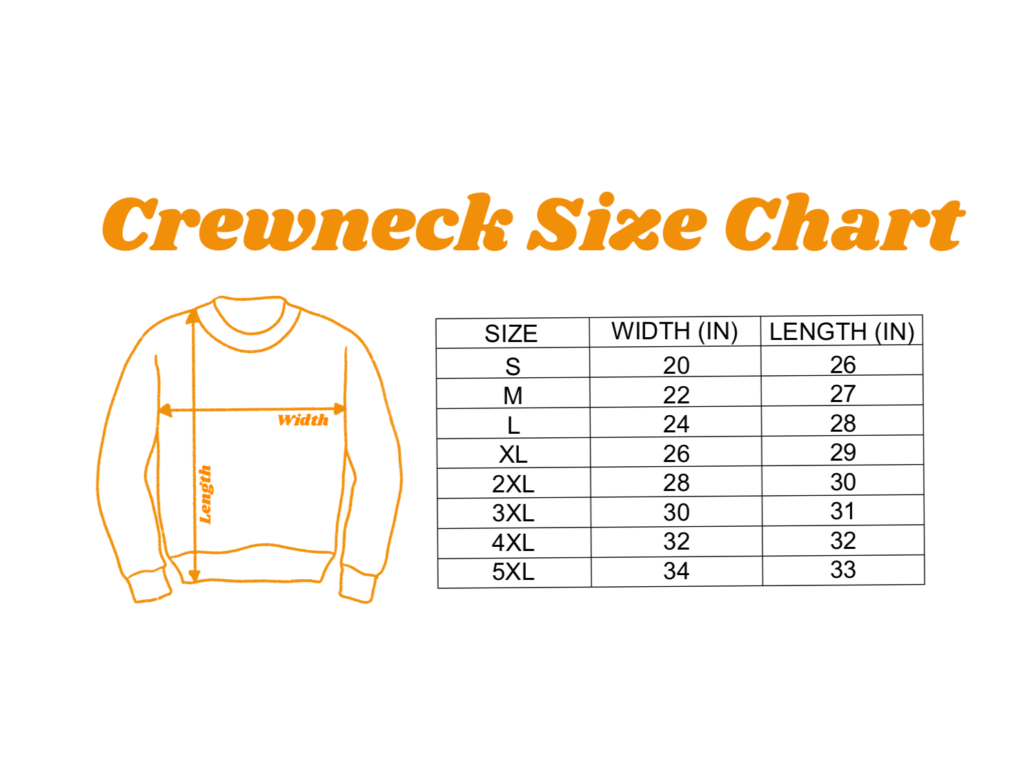 ***Please note actual colors may vary due to differences in computer monitors and browsers. Crewnecks are unisex sizing and may shrink depending on washing method. Because this item is made to order, this item is final sale. Please refer to the size chart to avoid purchasing the wrong size.