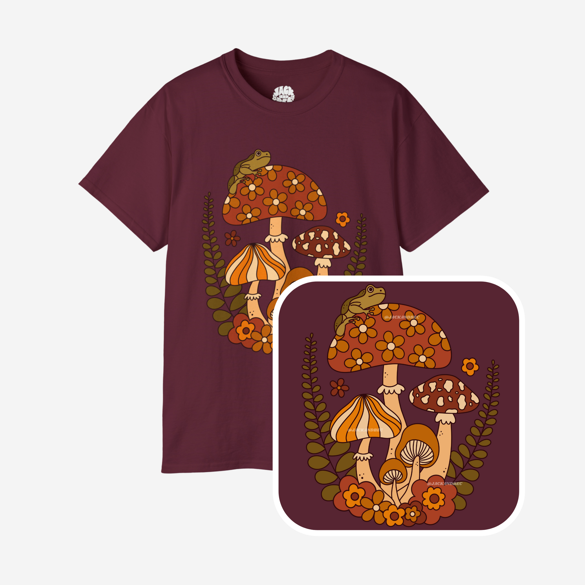 - Full color print on a Maroon T-shirt